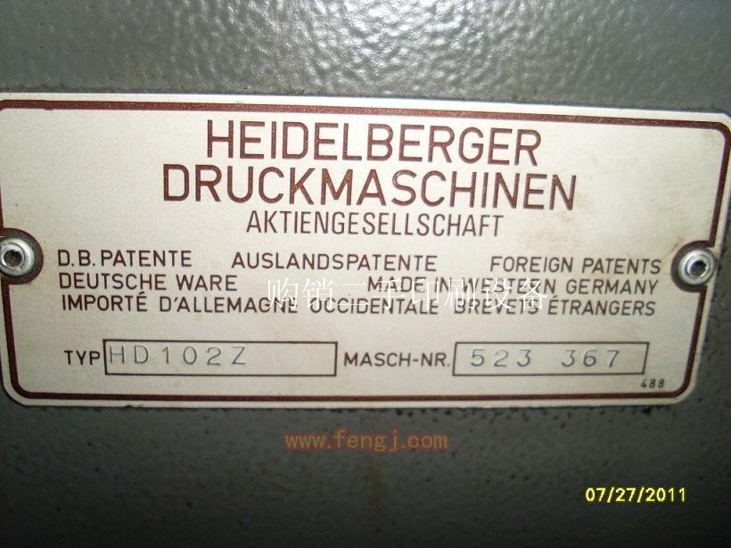 租購式出租85年海德堡102雙色水車高臺收紙